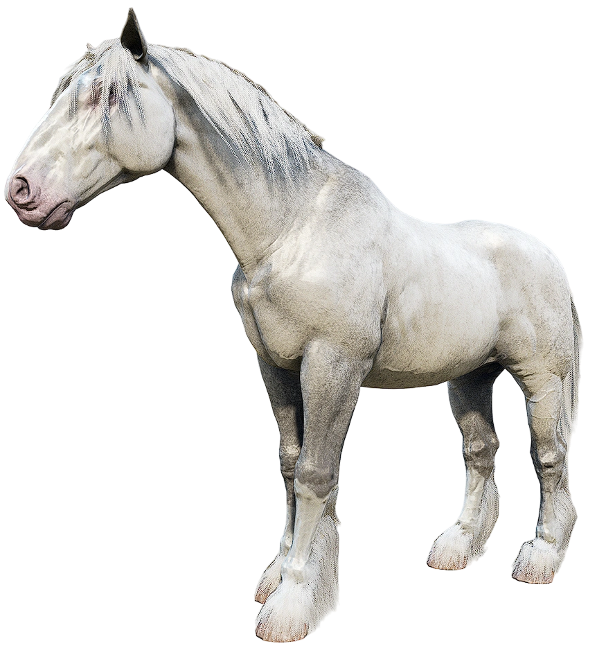 Os cavalos Shire são classificados como cavalos de tração. Podem ser identificados por sua estrutura robusta, franjas na parte inferior das pernas e perfil convexo da cabeça. São a raça de cavalo maior e mais forte, o que os torna perfeitos para puxar carroças pesadas, embora seu tamanho e peso possam torná-los mais difíceis de manejar. Esta raça é conhecida por ser saudável, com níveis médios de Velocidade e Resistência.